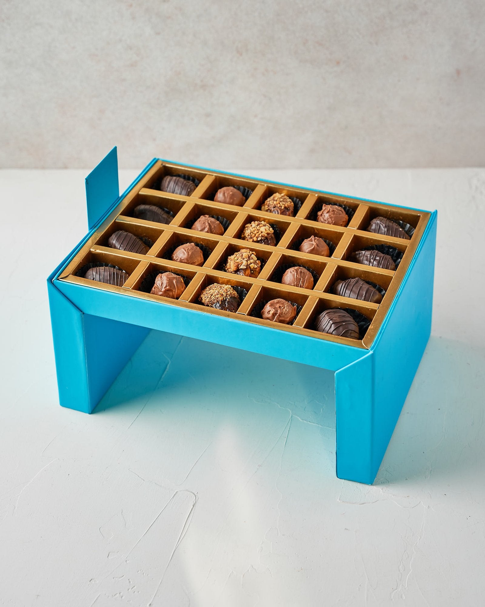 • 8 milk chocolate truffles in Pistachio, Hazelnut, Speculoos and Peanut Butter flavours
