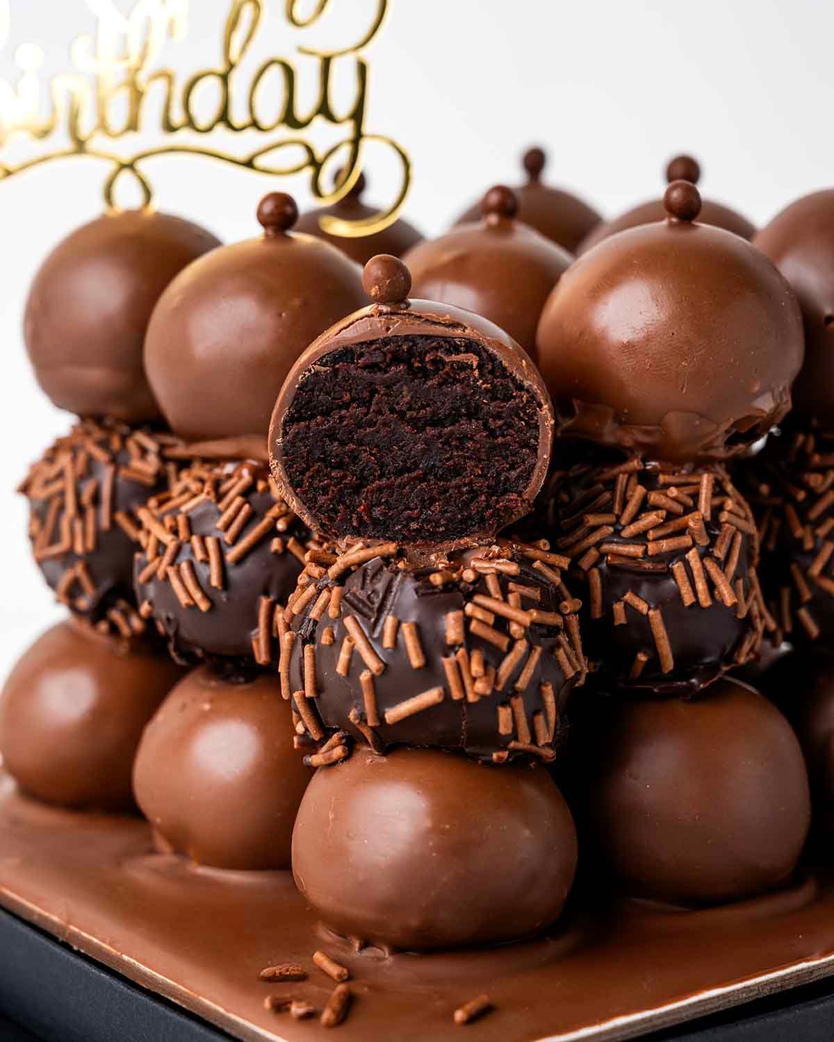 • 27 assorted cake pops covered in Milk and Dark Chocolate